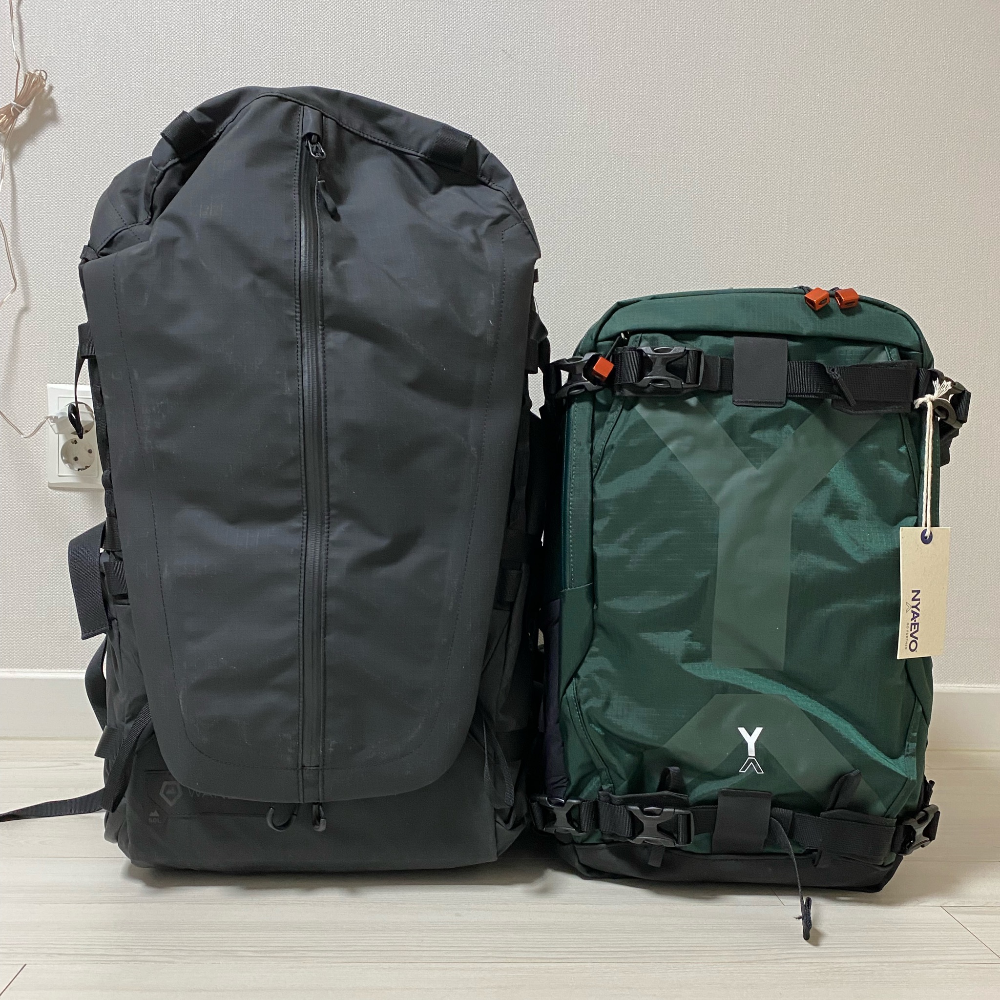 50L 가방과의 비교. 아담하다.